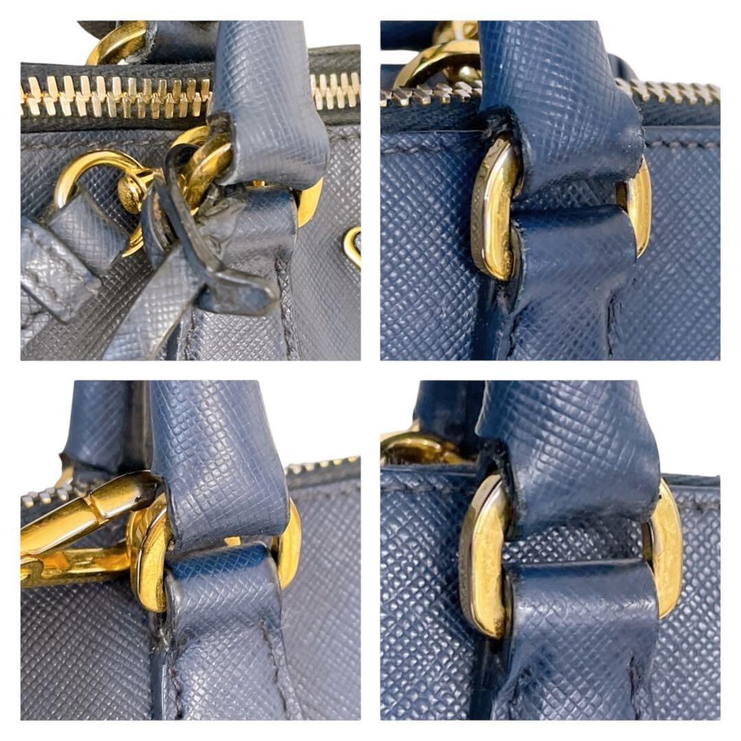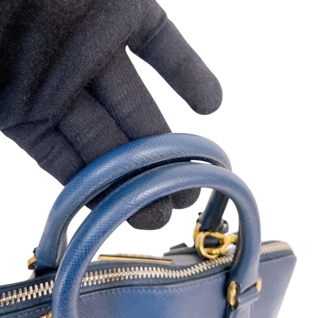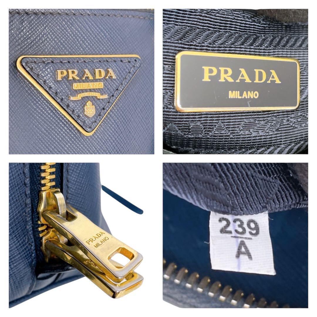 プラダ プロムナード サフィアーノ 三角ロゴ ハンドバッグ ネイビー系 4420