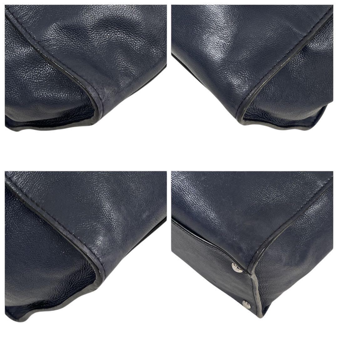 超希少 ルイヴィトン トートバッグ シボ革 三角ロゴ ネイビー系 5110